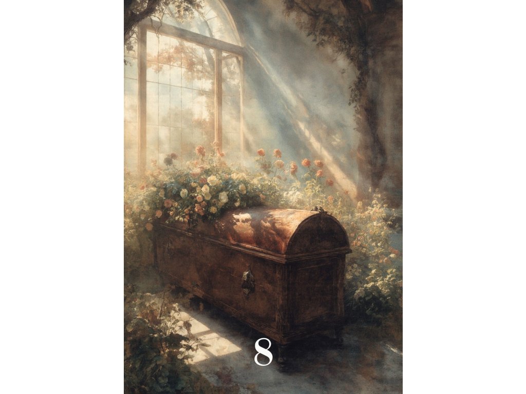 36 karet zasazených do období Belle Époque (1890–1914) – doby elegance, klobouků a kočárů, kdy se svět měnil a zároveň byl stále kouzelně pomalý.