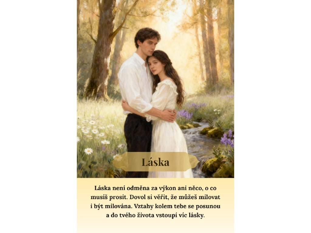52 karet, které propojují vnitřní uvědomění s jemným náhledem na vývoj situací. Každá karta nese sdělení zaměřené na vztah k sobě, hranice, důvěru, rozhodování i proměnu, kterou právě procházíte.