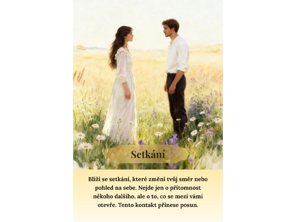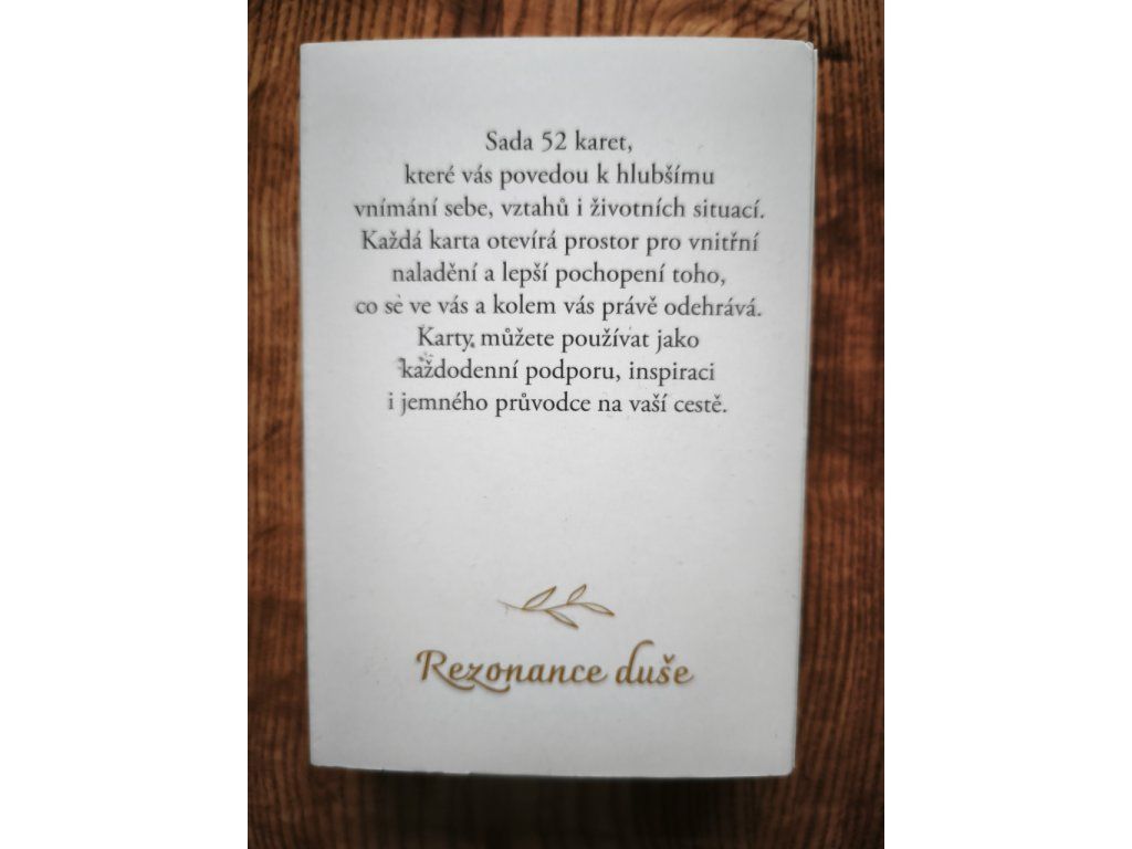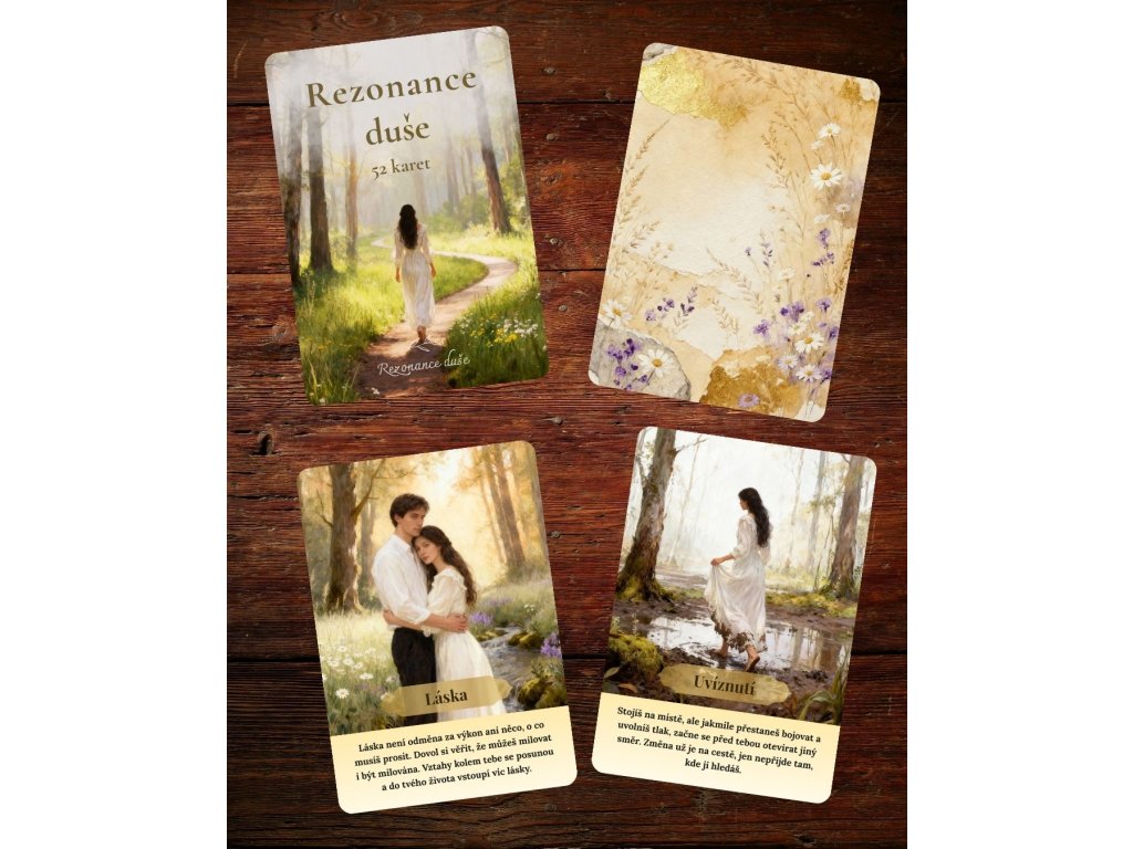 Rezonance duše vám nepředkládá pevně daný osud, ale ukazuje možné směry a posuny, které se kolem vás otevírají. Některé karty vás podpoří, jiné nastaví zrcadlo, další naznačí blížící se změnu, setkání nebo uzavření určité etapy.